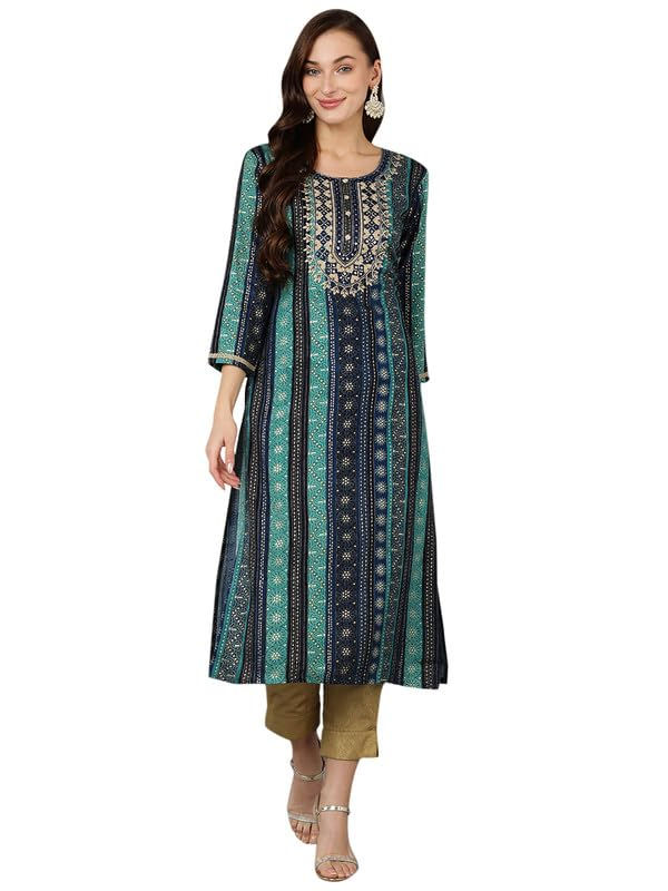 ANNI DESIGNER Women's Rayon Viscose Straight Printed Kurta with Pant (CHITRAN...
